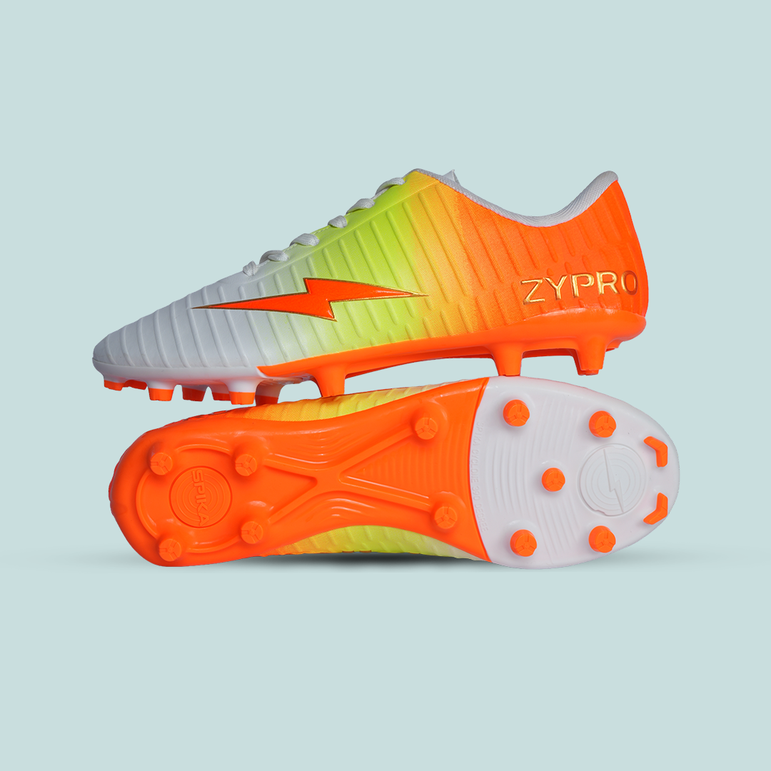 Step onto the pitch with confidence wearing the Spika Zypro Football Shoes, designed for players who value speed, control, and consistency in every match. Built with a lightweight yet durable construction, these shoes provide a snug fit that enhances agility and ensures better ball feel during fast-paced gameplay. The textured upper and responsive sole work together to deliver improved grip, stability, and precision—making them a reliable choice for both practice sessions and competitive play.